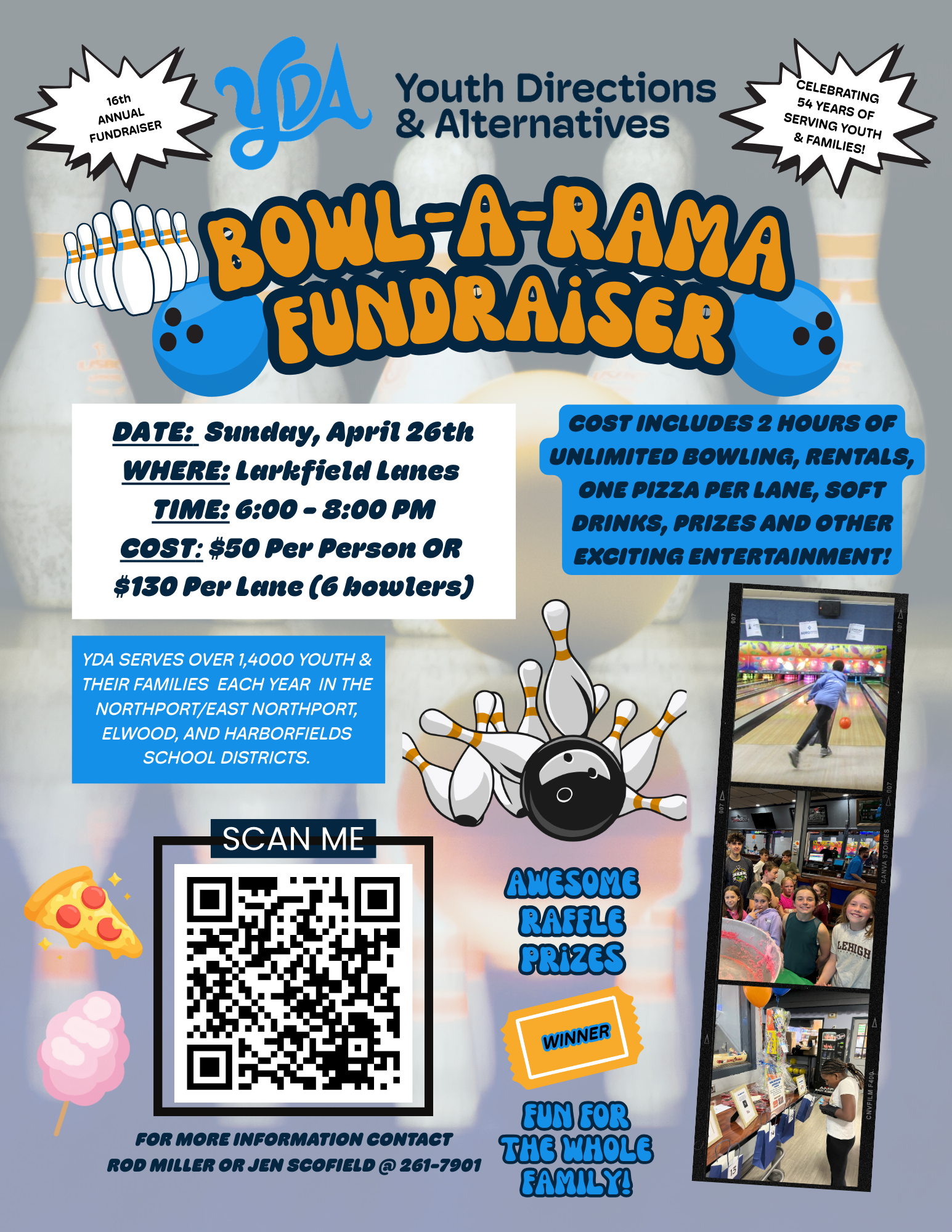 YDA is celebrating 54 years of serving families! To celebrate, join us for our 13th annual BOWL-A-RAMA FUNdraiser. Enjoy food, prizes, and so much fun!